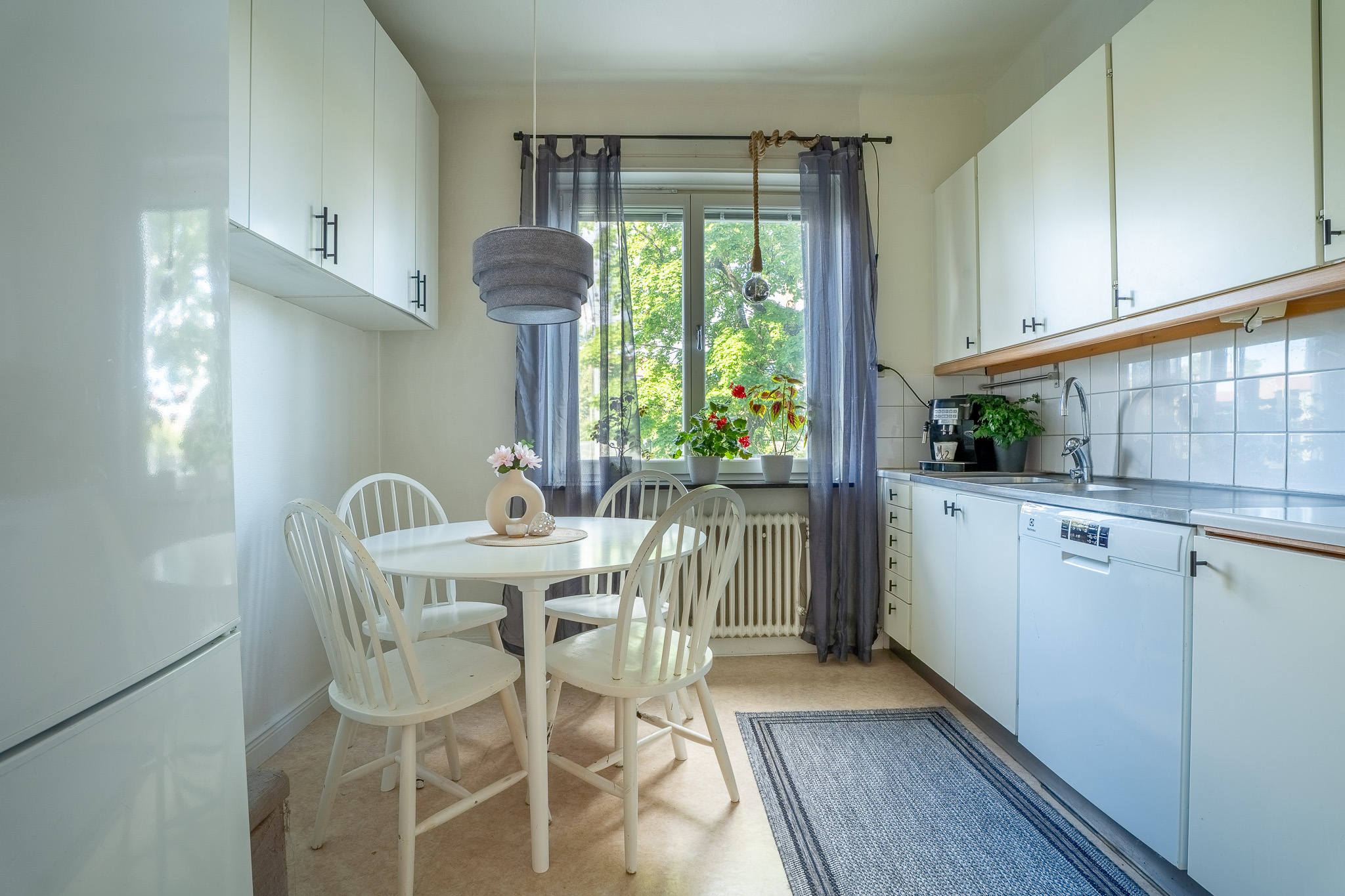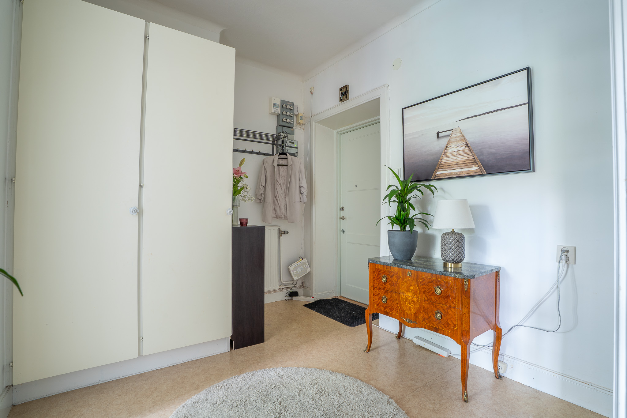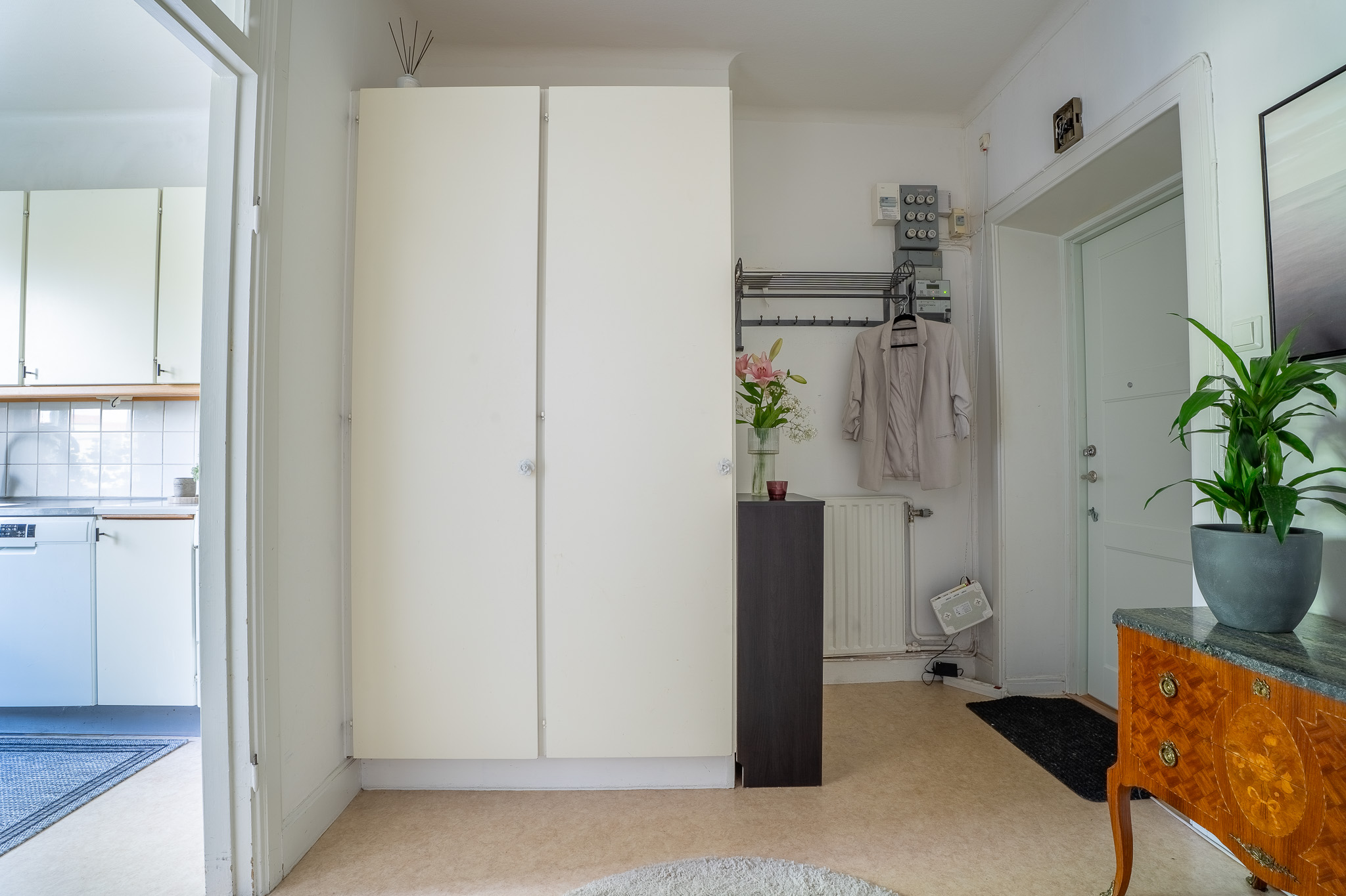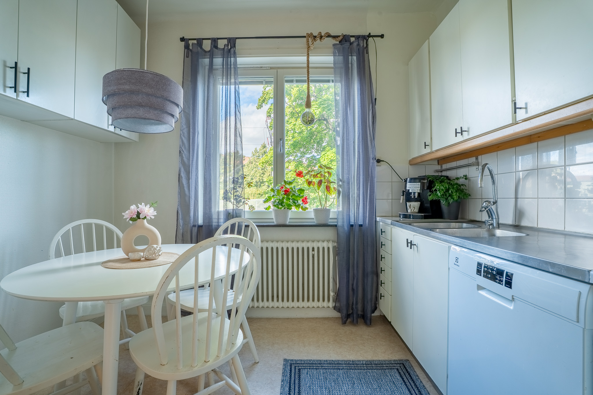 Välkommen till denna tvåa belägen i hjärtat av Söder, där stadens puls möter bekvämlighet och charm! Denna lägenhet är perfekt för er som söker närhet till allt – endast ett stenkast från centrum, högskolan och ett brett utbud av affärer. Vi välkomnas in i den möblerbara entréhallen, här finns det gott om utrymme för avhängning och förvaring i garderober. I anslutning till entréhallen kommer vi in i köket som erbjuder förvaringsmöjligheter i både överskåp och underskåp. Det finns gott om utrymme för ett köksbord med tillhörande stolar. Lite längre in i bostaden hittar vi vardagsrummet som rymmer en generös soffgrupp, tv-möbel och annat möblemang om det önskas, här finns det även en rymlig klädkammare. Sovrummet är generöst och erbjuder plats för en dubbelsäng och förvaringsmöbel. Det helkaklade badrummet når vi från lägenhetens sovrum och det har sobra färgval och är utrustat med dusch bakom vikbara glasdörrar, handfat på kommod, spegelskåp och tvättmaskin. I anslutning till entréhallen hittar vi även ett mindre badrum som är utrustat med handfat på kommod, spegelskåp samt wc. Området Söder i Eskilstuna är en trevlig och populär plats med grönskande parker och vackra promenadstråk längs ån. Vid Sveaplan finns allt man behöver, allt från gym och mataffärer till restauranger och vårdcentraler. Gamla stadens charmiga butiker, caféer och salonger erbjuder en mix av shopping och avkoppling. En kort promenad över ån tar dig till tågstationen, centrum och universitetet åt ena hållet, och till Mälarsjukhuset åt andra hållet.