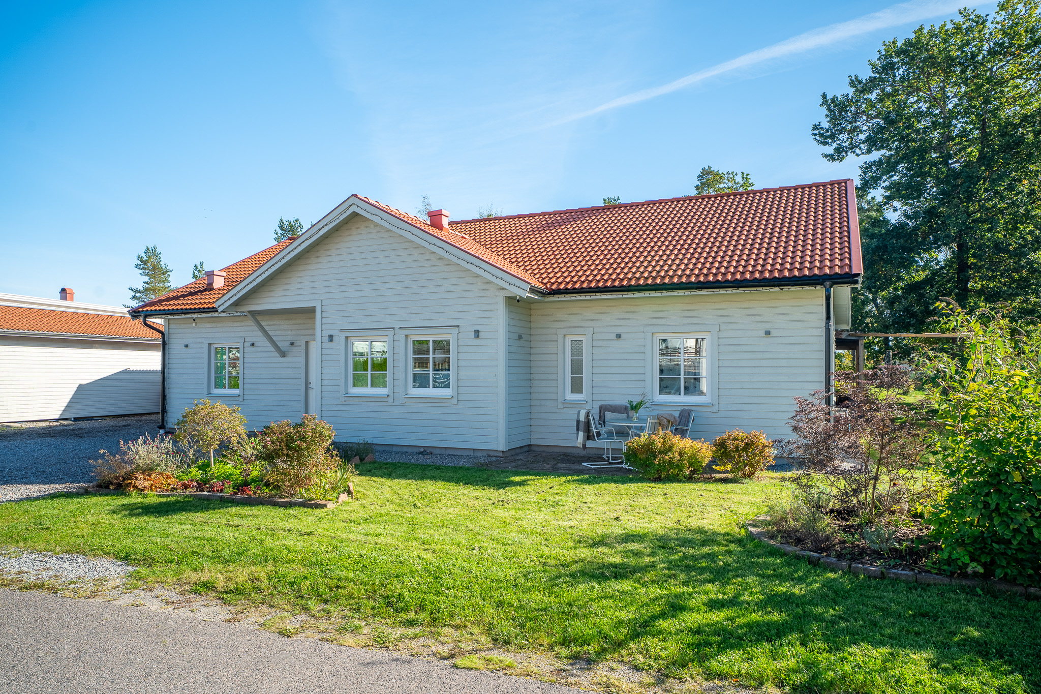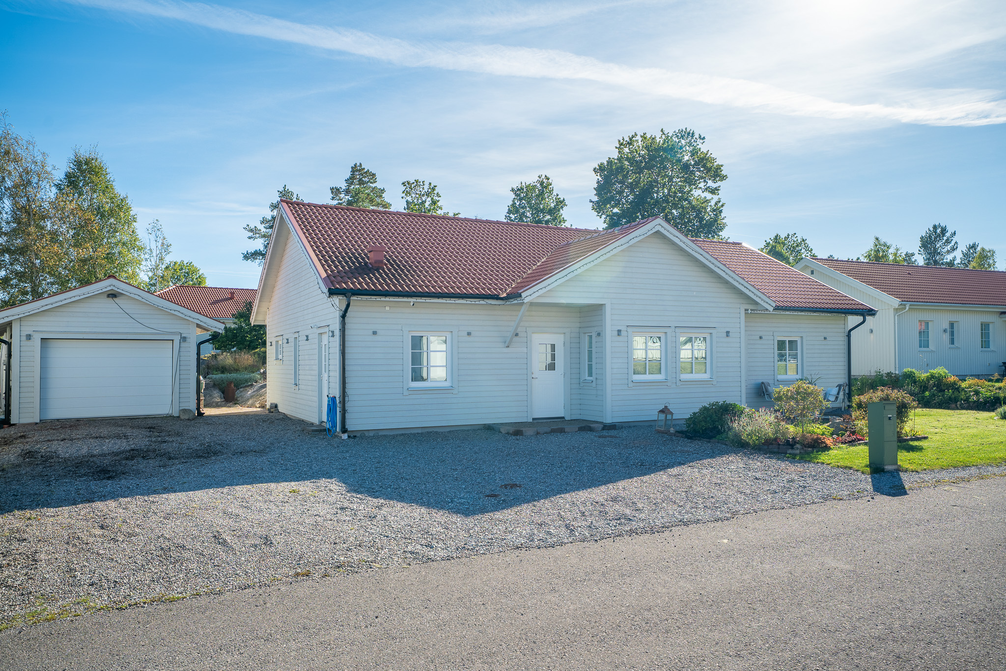 Modernt enplanshus med öppen planlösning, fristående garage och härlig uteplats!