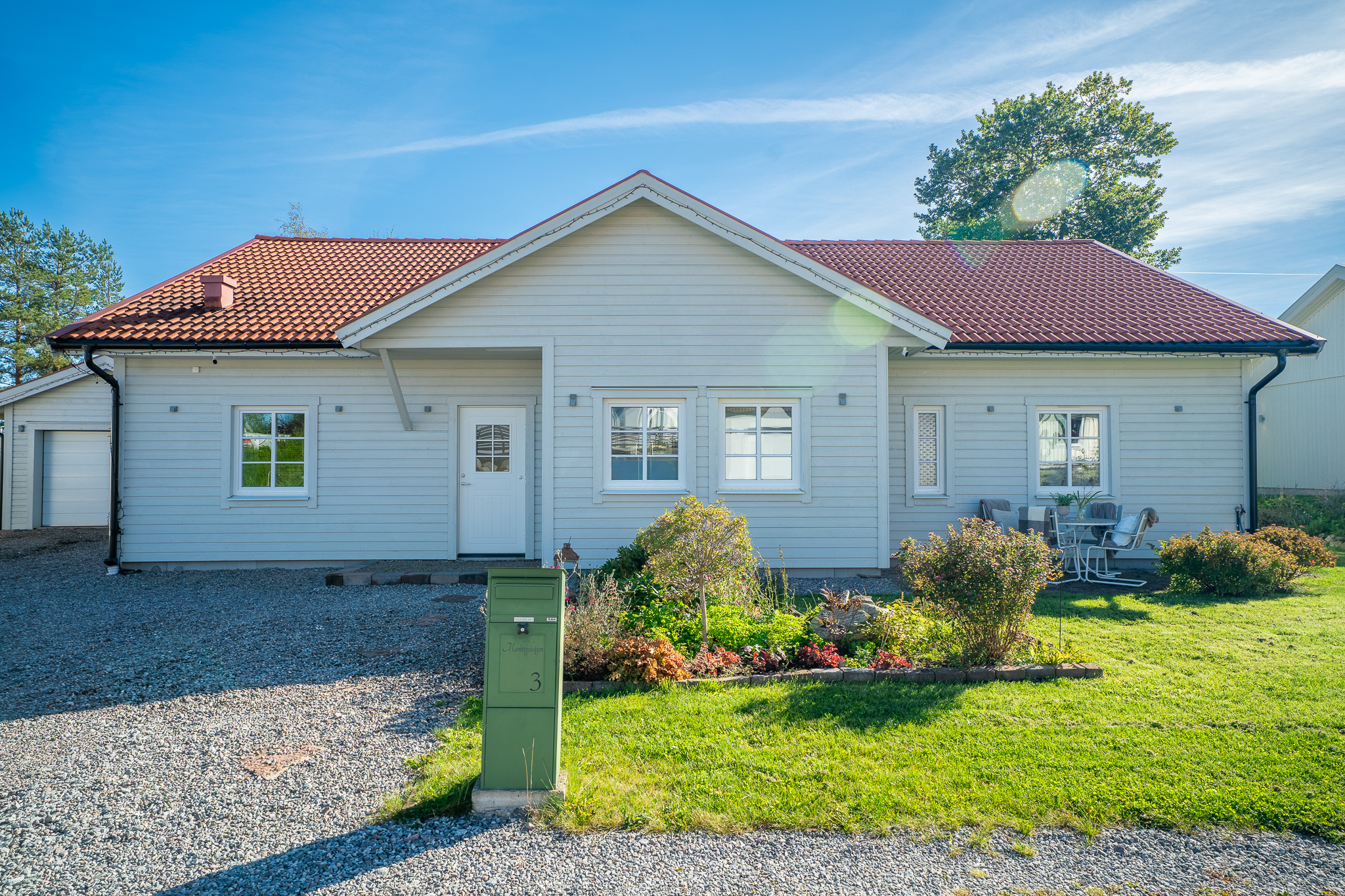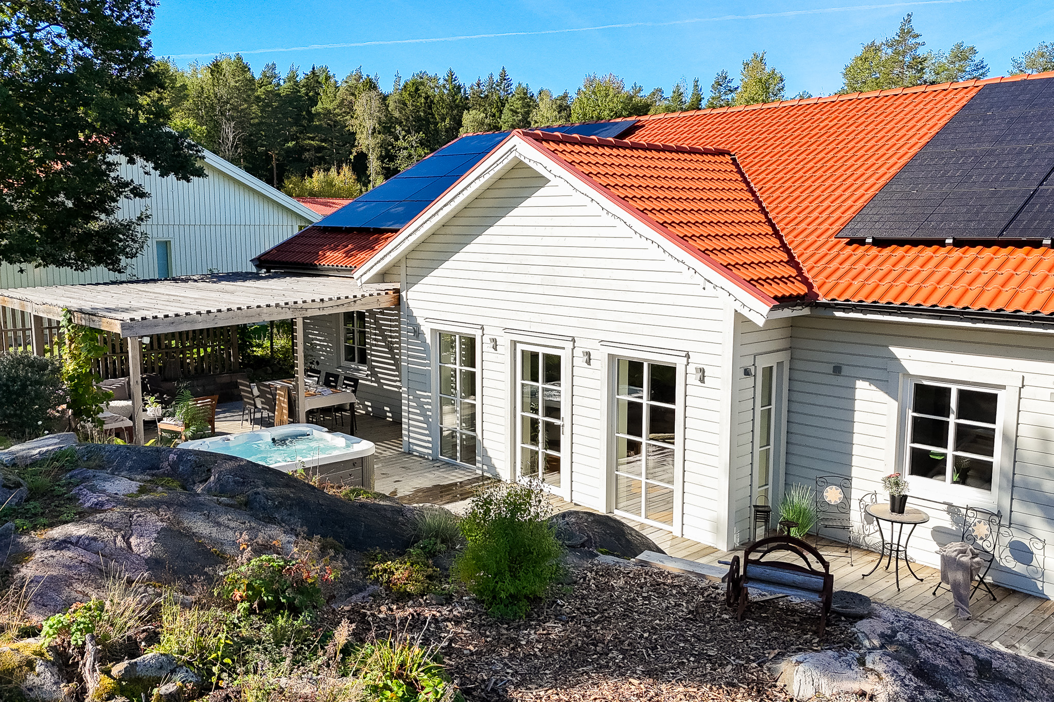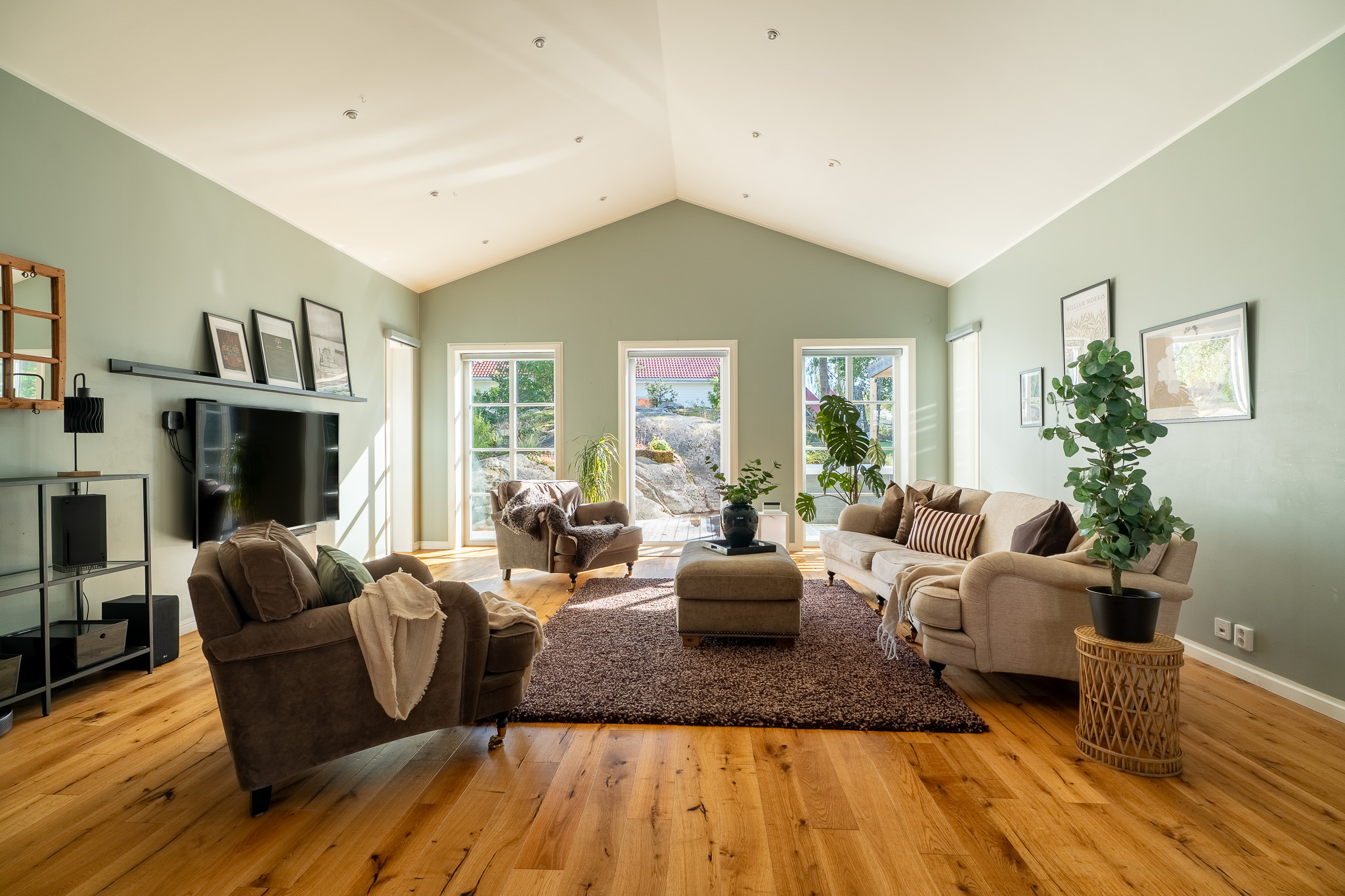 Stilrent och moderna enplanshus uppfört 2018 om bekväma 140 kvm! Här erbjuds ett välplanerat hem om sex rum och kök med genomgående golvvärme i hela huset. Där ljusa sobra ytskikt kombineras i en smakfull färgsättning med det enhetliga golvet för att skapa en varm hemtrevnads känsla. Bostaden är familjevänlig och väl genomtänkt med kök och vardagsrum i en öppen, social planlösning. Den generösa takhöjden som här erbjuds ger bostaden känsla av rymd där ni enkelt får plats med både större matgrupp och möblemang, perfekt för både vardag och festligheter. Utöver detta finns även ett allrum i anslutning till de tre sovrummen och kan med fördel nyttjas som en idealisk yta för barnens lek eller som extra tv-rum. Det lite större sovrummet som nyttjats som Master bedroom ligger avskilt på ena sidan av huset, med både möjlighet till egen klädkammare och närhet till ett av bostadens två badrum. Vilket skapar en familjevänlig balans mellan bostadens privata och sociala delar av hemmet. Bostaden har två helkaklade badrum, båda rymliga med dusch, kommod och wc. Intill entréhallen finns också en praktisk tvättstuga med både tvättmaskin, torktumlare och praktisk groventré. Utemiljön är lika tilltalande som bostaden. På framsidan möts du av en stor grusad uppfart med plats för bil och ett fristående garage. Till fastigheten finns sommarvatten. På baksidan finner ni en mysig trädgårdsmiljö som bjuder in med blommande växter, prydliga buskar och här kan du även plocka både blåbär och lingon direkt från tomten. Under pergolan slingrar sig även vindruvor för egen skörd och här på baksidan av huset finns även ett spabad med saltvatten. En perfekt plats för avkoppling året runt. Till fastigheten hör även en båtplats. Här i Sundby Strand bor du i ett lugnt och familjevänligt område med närhet till Mälarens vatten, badplatser och vackra strövområden. I området finns goda förutsättningar för ett bekvämt familjeliv med skolor, förskolor och idrottsplats på nära håll samtidigt som du smidigt når Strängnäs centrum med bil. Från Strängnäs finns goda pendlingsmöjligheter med tåg till bland annat Stockholm, Eskilstuna och Västerås. Varmt välkommen med din intresseanmälan!