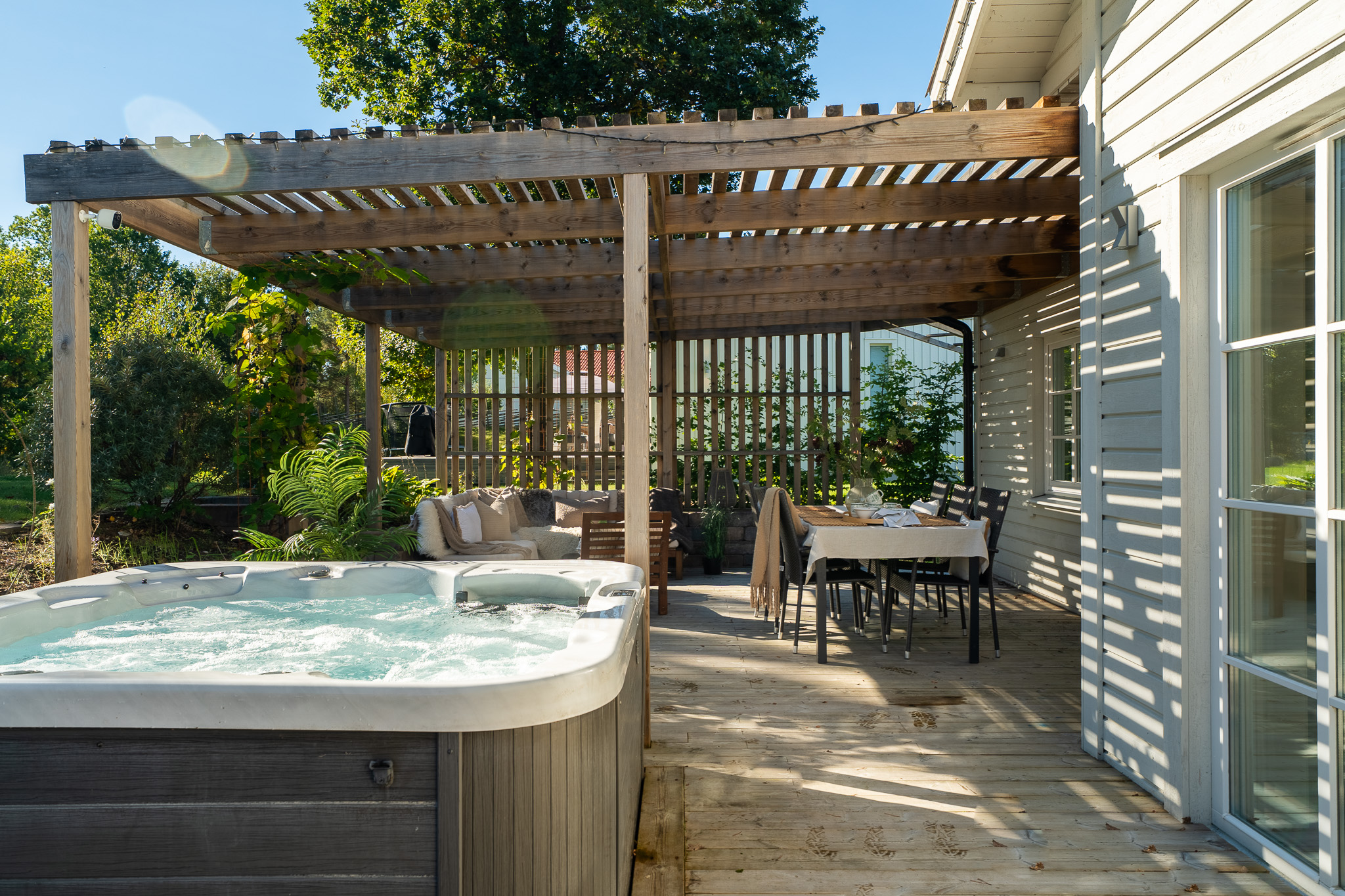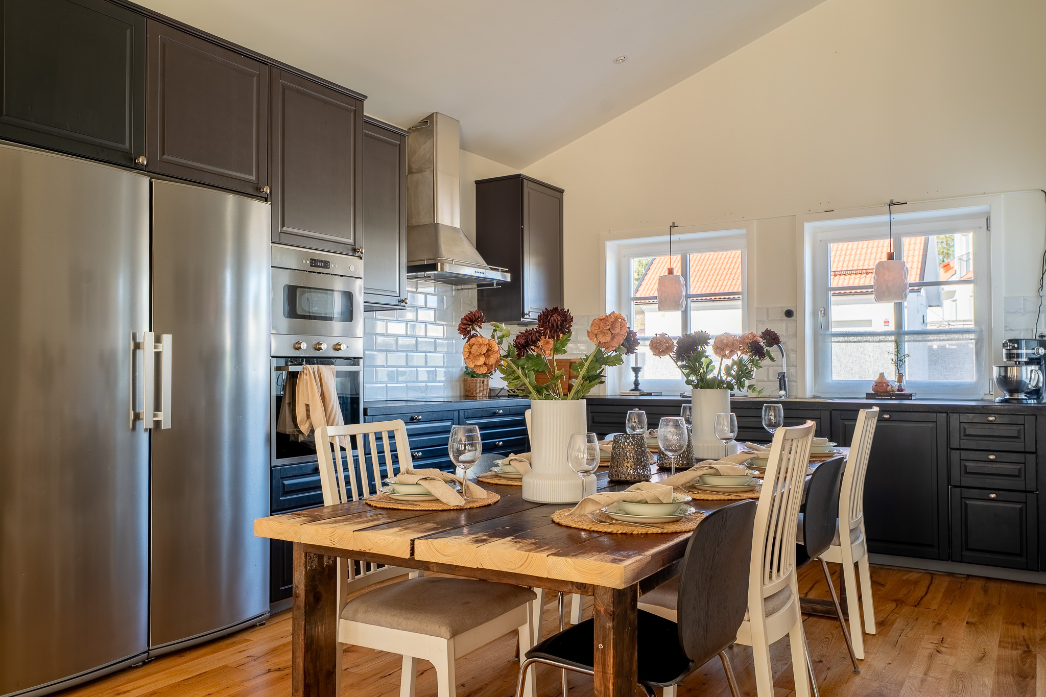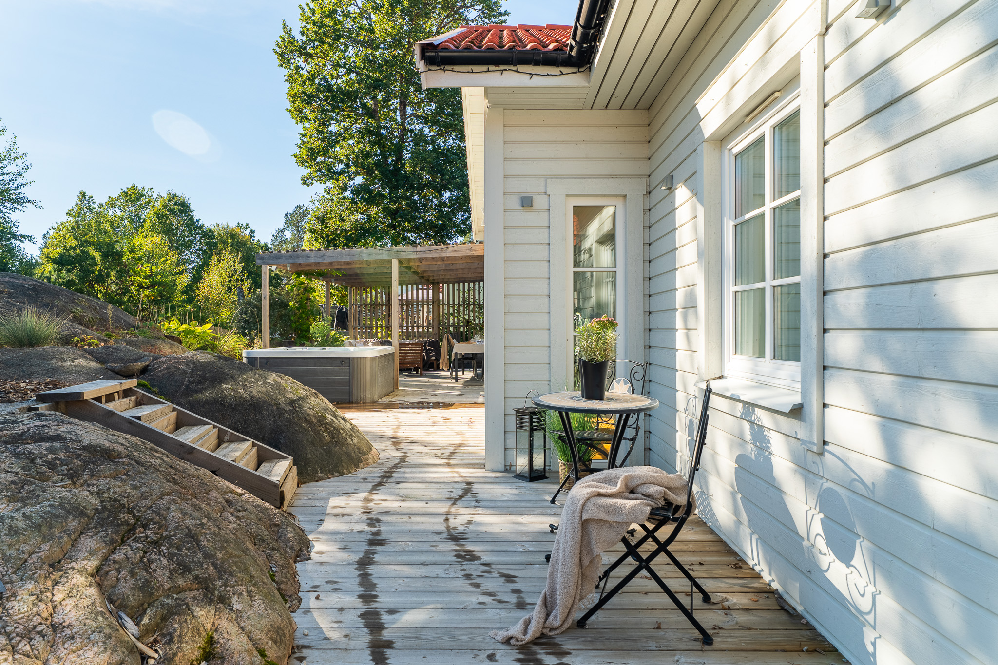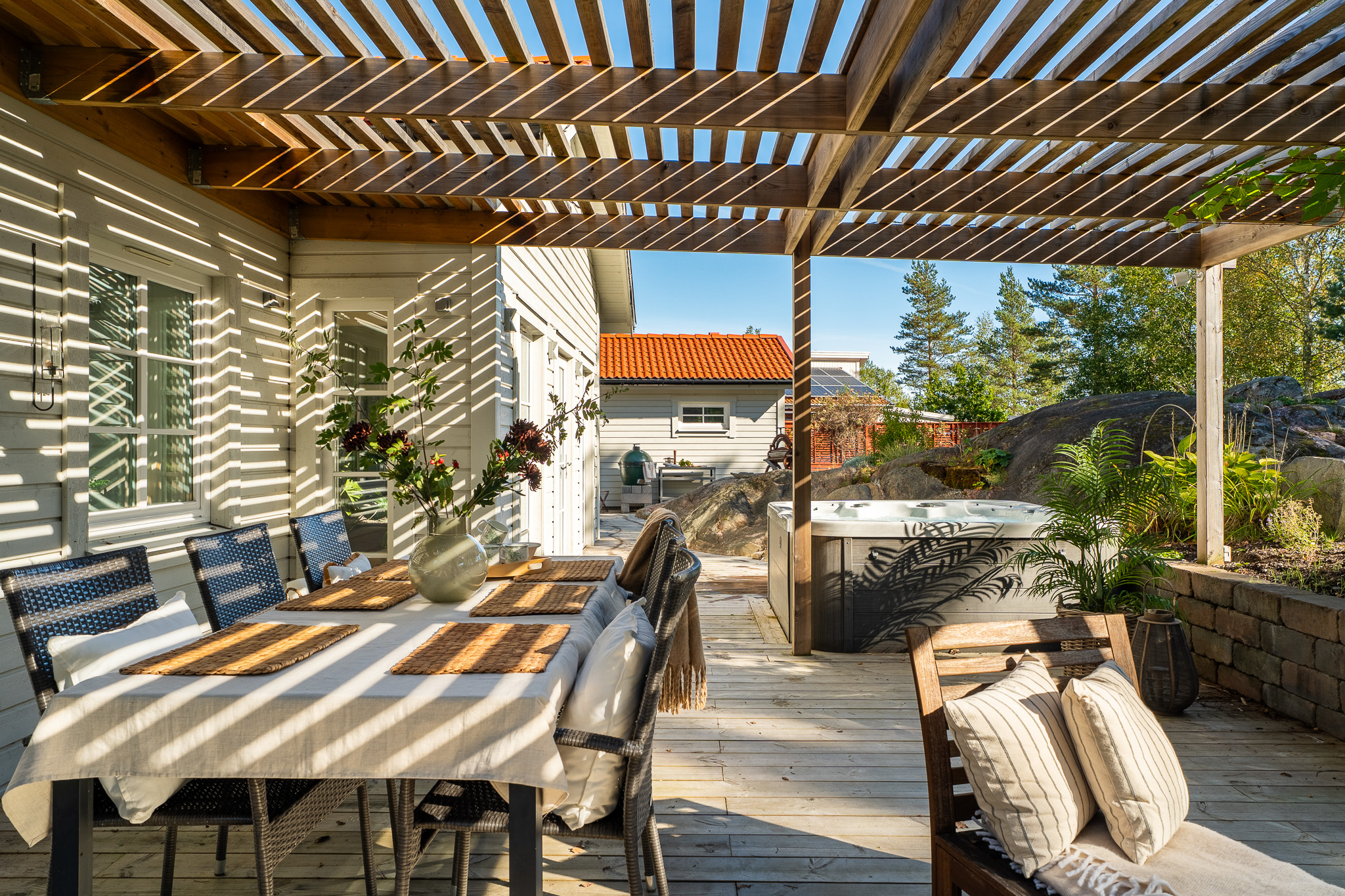 Stilrent och moderna enplanshus uppfört 2018 om bekväma 140 kvm! Här erbjuds ett välplanerat hem om sex rum och kök med genomgående golvvärme i hela huset. Där ljusa sobra ytskikt kombineras i en smakfull färgsättning med det enhetliga golvet för att skapa en varm hemtrevnads känsla. Bostaden är familjevänlig och väl genomtänkt med kök och vardagsrum i en öppen, social planlösning. Den generösa takhöjden som här erbjuds ger bostaden känsla av rymd där ni enkelt får plats med både större matgrupp och möblemang, perfekt för både vardag och festligheter. Utöver detta finns även ett allrum i anslutning till de tre sovrummen och kan med fördel nyttjas som en idealisk yta för barnens lek eller som extra tv-rum. Det lite större sovrummet som nyttjats som Master bedroom ligger avskilt på ena sidan av huset, med både möjlighet till egen klädkammare och närhet till ett av bostadens två badrum. Vilket skapar en familjevänlig balans mellan bostadens privata och sociala delar av hemmet. Bostaden har två helkaklade badrum, båda rymliga med dusch, kommod och wc. Intill entréhallen finns också en praktisk tvättstuga med både tvättmaskin, torktumlare och praktisk groventré. Utemiljön är lika tilltalande som bostaden. På framsidan möts du av en stor grusad uppfart med plats för bil och ett fristående garage. Till fastigheten finns sommarvatten. På baksidan finner ni en mysig trädgårdsmiljö som bjuder in med blommande växter, prydliga buskar och här kan du även plocka både blåbär och lingon direkt från tomten. Under pergolan slingrar sig även vindruvor för egen skörd och här på baksidan av huset finns även ett spabad med saltvatten. En perfekt plats för avkoppling året runt. Till fastigheten hör även en båtplats. Här i Sundby Strand bor du i ett lugnt och familjevänligt område med närhet till Mälarens vatten, badplatser och vackra strövområden. I området finns goda förutsättningar för ett bekvämt familjeliv med skolor, förskolor och idrottsplats på nära håll samtidigt som du smidigt når Strängnäs centrum med bil. Från Strängnäs finns goda pendlingsmöjligheter med tåg till bland annat Stockholm, Eskilstuna och Västerås. Varmt välkommen med din intresseanmälan!