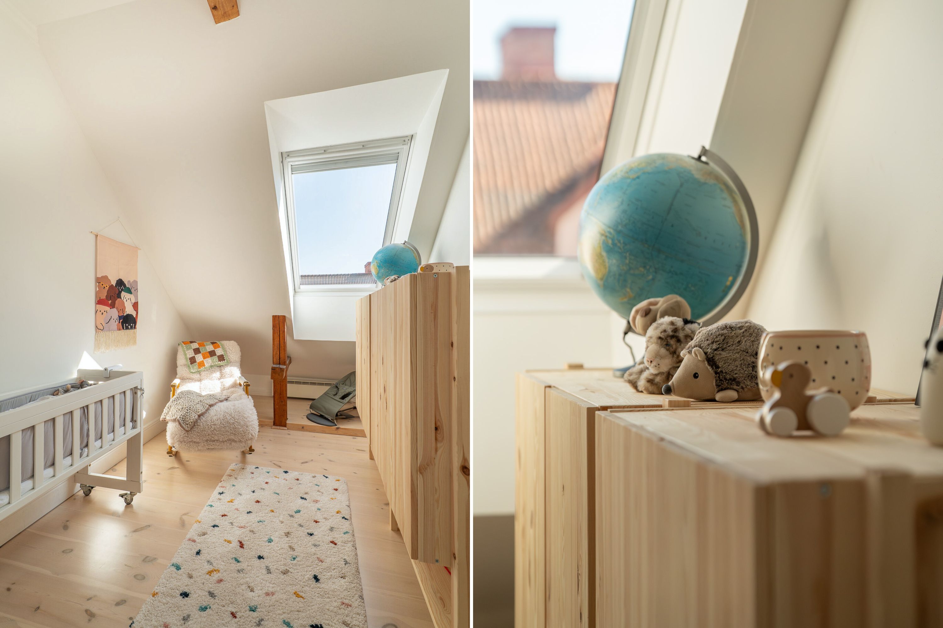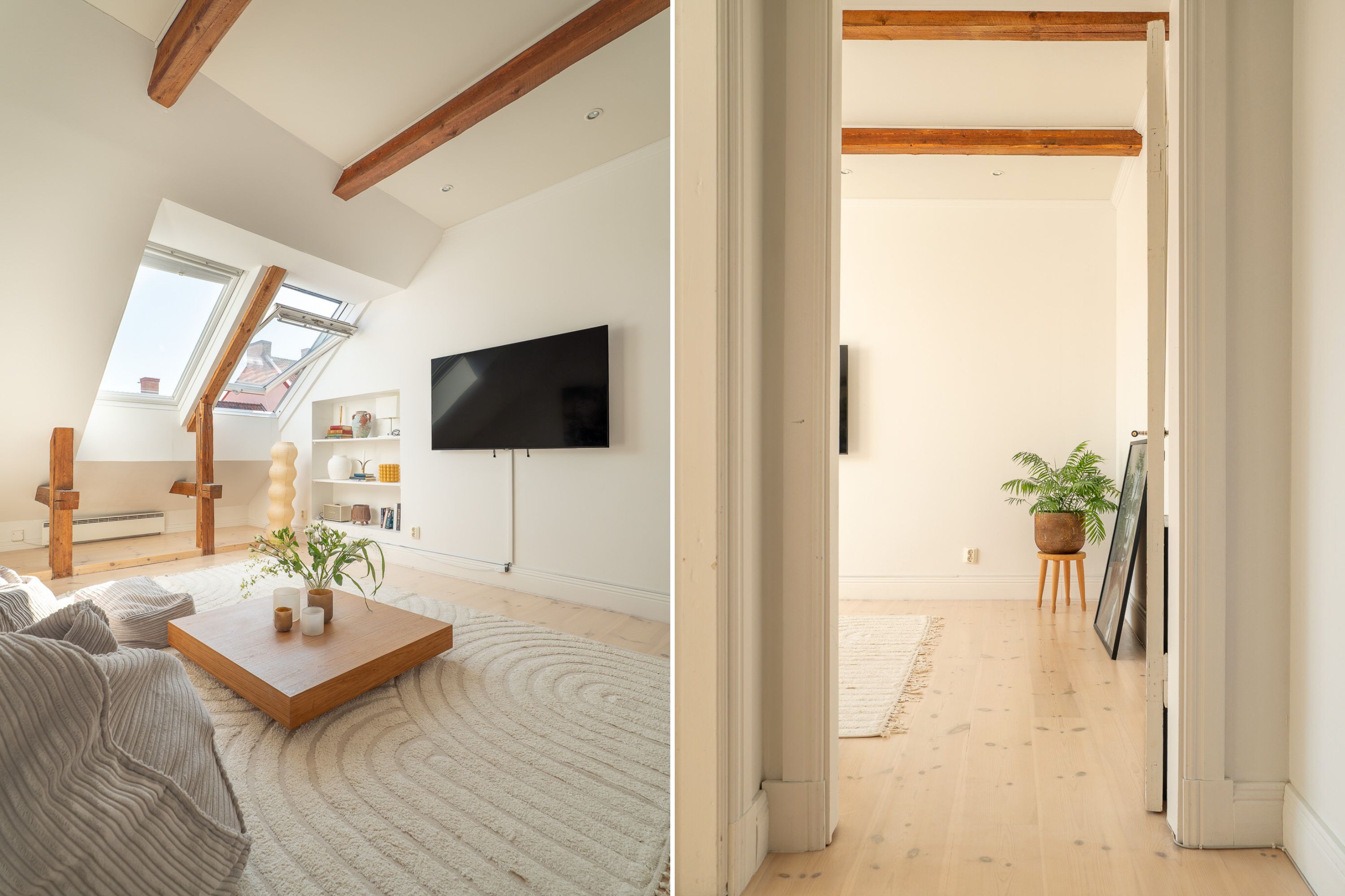 Välkommen till denna unika och charmiga vindsvåning i en ståtlig fastighet från 1926. Här har vinden förvandlats till en stilfull bostad med etagekänsla, där tidstypisk charm möter modern komfort. Den generösa takhöjden tillsammans med stora fönsterpartier skapar en ljus och luftig känsla genom hela bostaden, medan vackra detaljer som höga socklar, trägolv och eleganta skjutdörrar bevarar byggnadens karaktär. Bostaden om 110 kvm fördelar sig på två plan med fyra rum och kök, inklusive tre sovrum. En perfekt kombination av historisk elegans och nutida funktionalitet. I den välkomnande entréhallen finns gott om plats för både avhängning och förvaring. Härifrån nås även badrummet med wc, handfat och dusch. Köket är inbjudande och ljust, med generös förvaring i skåp och lådor samt att det finns en härlig köksö. Vardagsrummet erbjuder fina fönsterpartier, vackert trägolv och gott om plats för både soffgrupp, matsalsmöbel och annan inredning efter önskemål. På den övre våningen – som utgör den ombyggda vinden – finner du tre rymliga sovrum med plats för dubbelsäng och bra förvaringsmöjligheter. Här finns också ett nybyggt badrum i klassisk stil med sobra färgval. Detta badrum är utrustat med handfat på kommod, wc samt tvättmaskin. Övre våningen erbjuder även en generös walk in closet som ni når från det största sovrummet. BRF Vågen 6 är en stabil och välmående bostadsrättsförening som kännetecknas av sina låga avgifter och goda ekonomiska förutsättningar. På innergården finns trevliga uteplatser där man kan koppla av. I källaren finns en relaxavdelning med bastu för medlemmarnas bruk. Föreningen har en gemensam tvättstuga utrustad med torkrum och mangel. Parkering finns tillgänglig på gården. Medlemmarna hjälps åt med trädgårdsarbete och skötsel av trapporna för att hålla föreningen trevlig och välskött. Det centrala läget gör att du har allt inom räckhåll – centrumkärnan med dess restauranger, kultur- och nöjesutbud samt Mälardalens universitet ligger bara några minuters promenad bort. Du kan enkelt gå till matbutiker, padelhall, gym, den nyöppnade Biostaden och tågstationen, vilket är perfekt för pendlare. Detta är en lägenhet som måste upplevas på plats för att fullt ut kunna uppskatta dess charm. Välkommen att göra detta fantastiska hem till ditt eget!