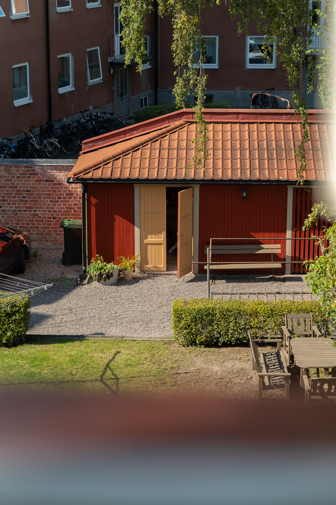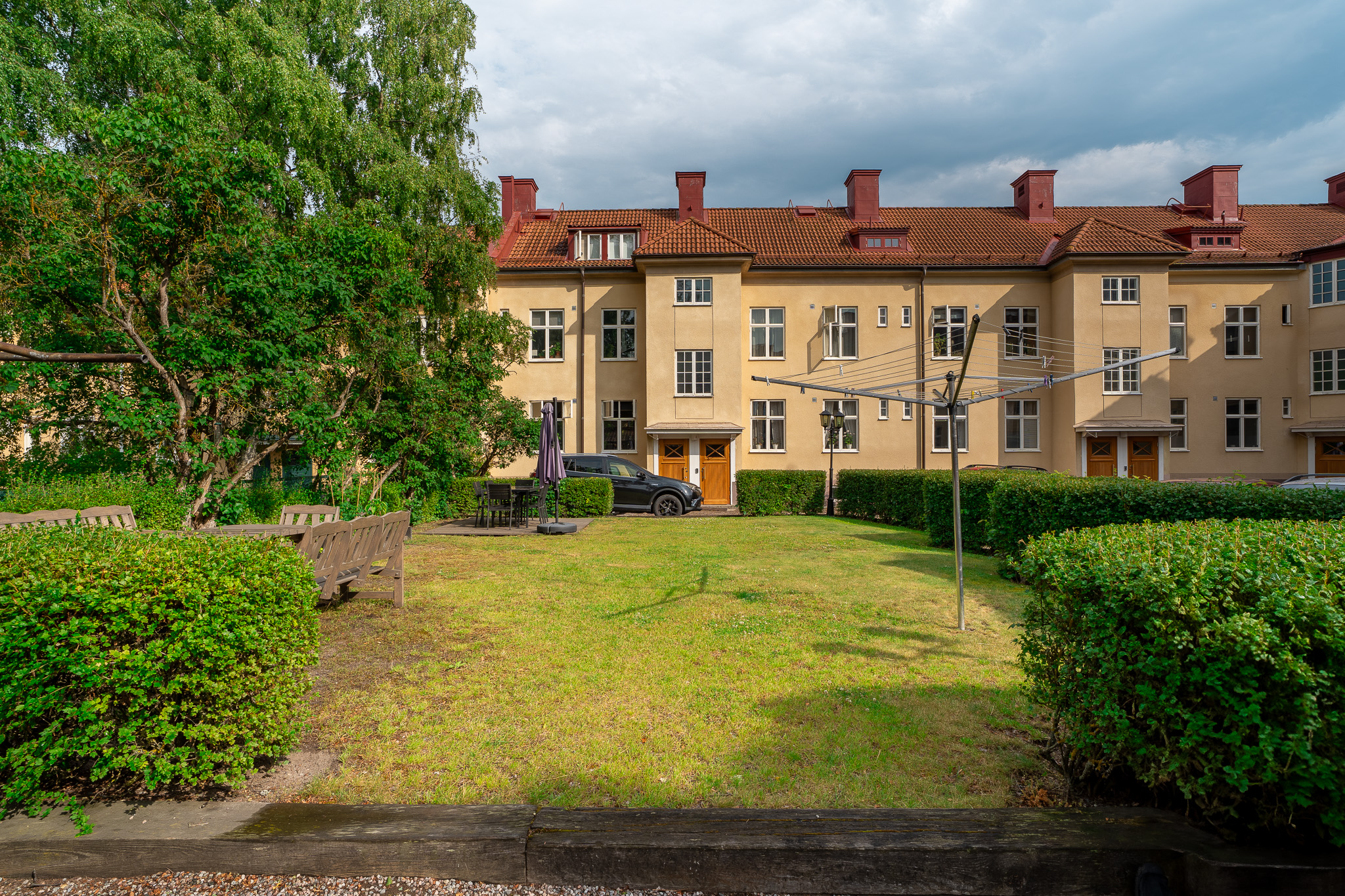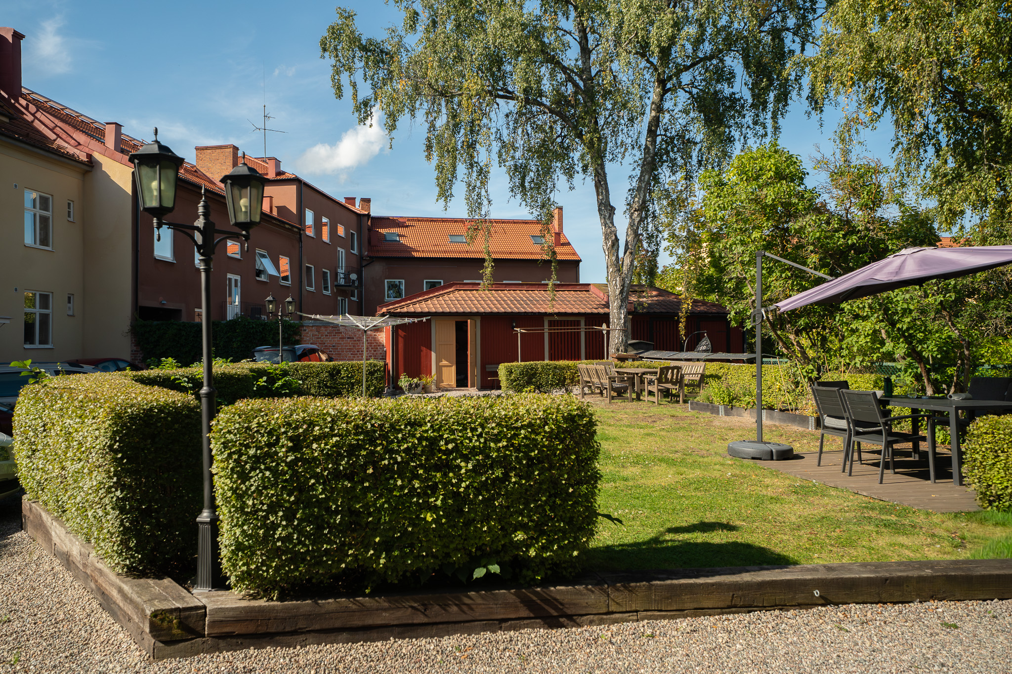 En gemensam uteplats som föreningens medlemmar får bruka.