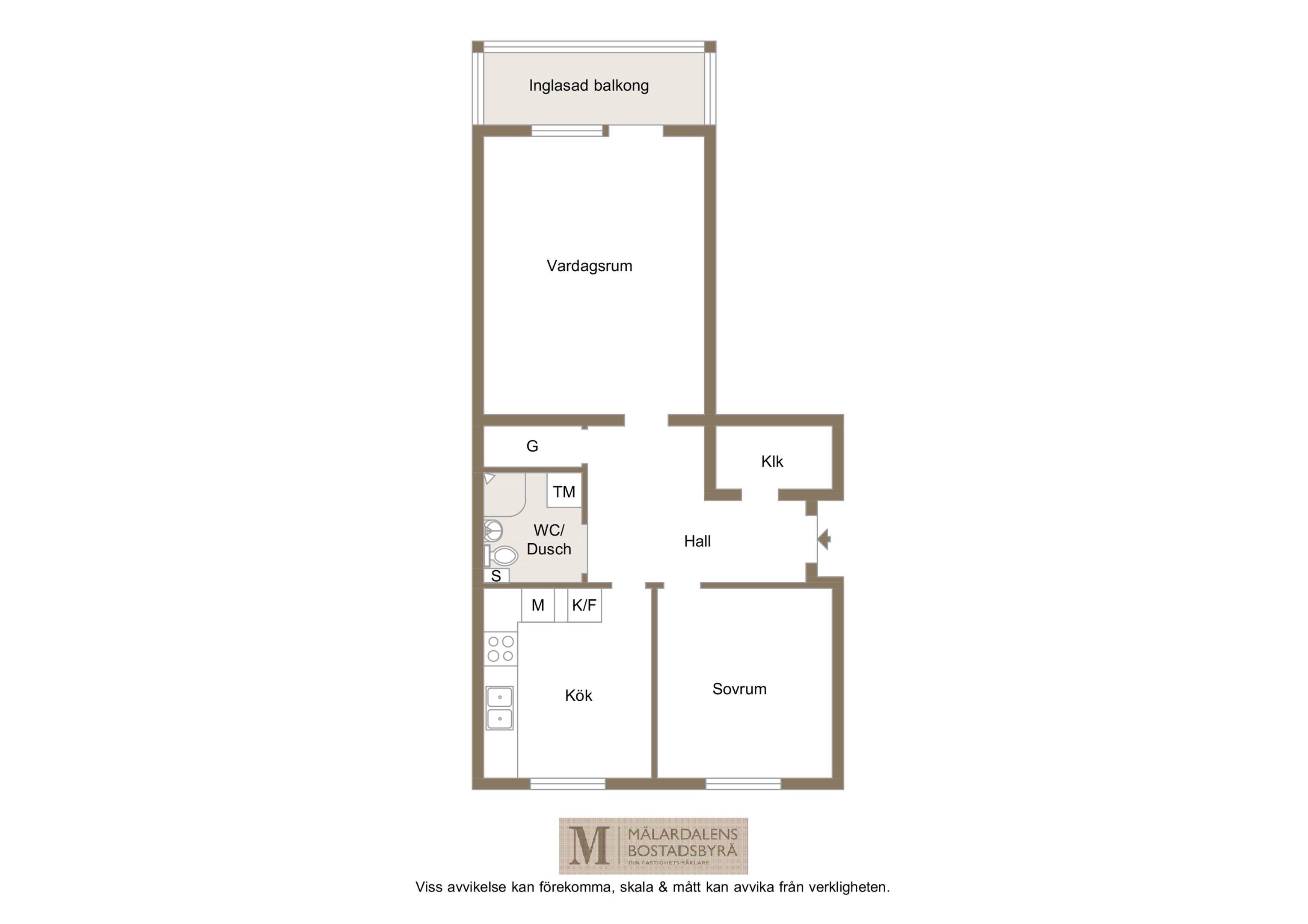 Stilren tvåa på våning 1 - Bra förvaring, inglasad balkong och genomtänkt planlösning!