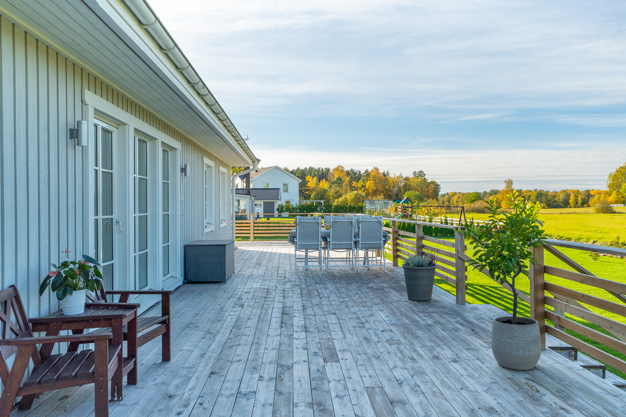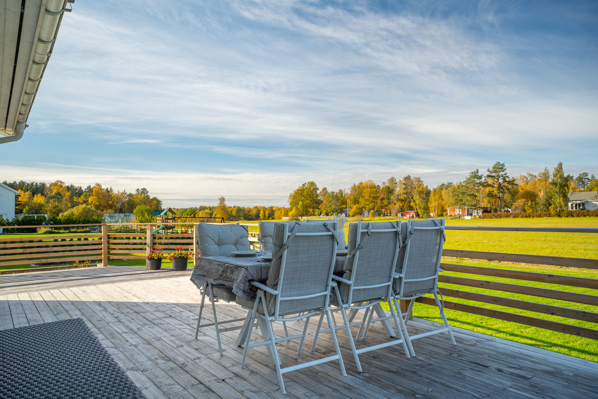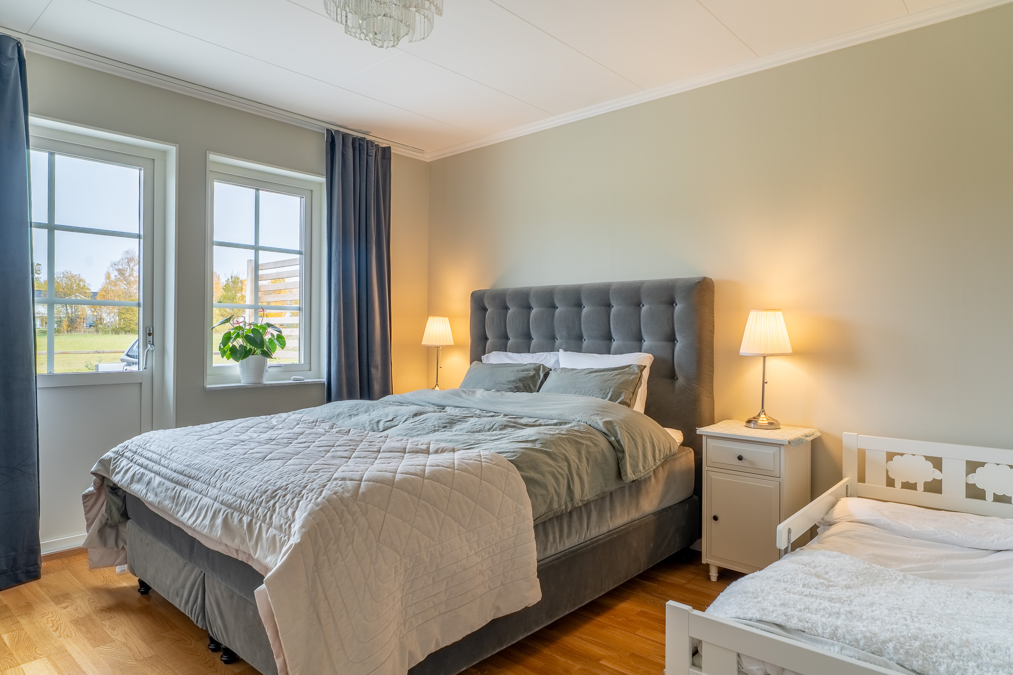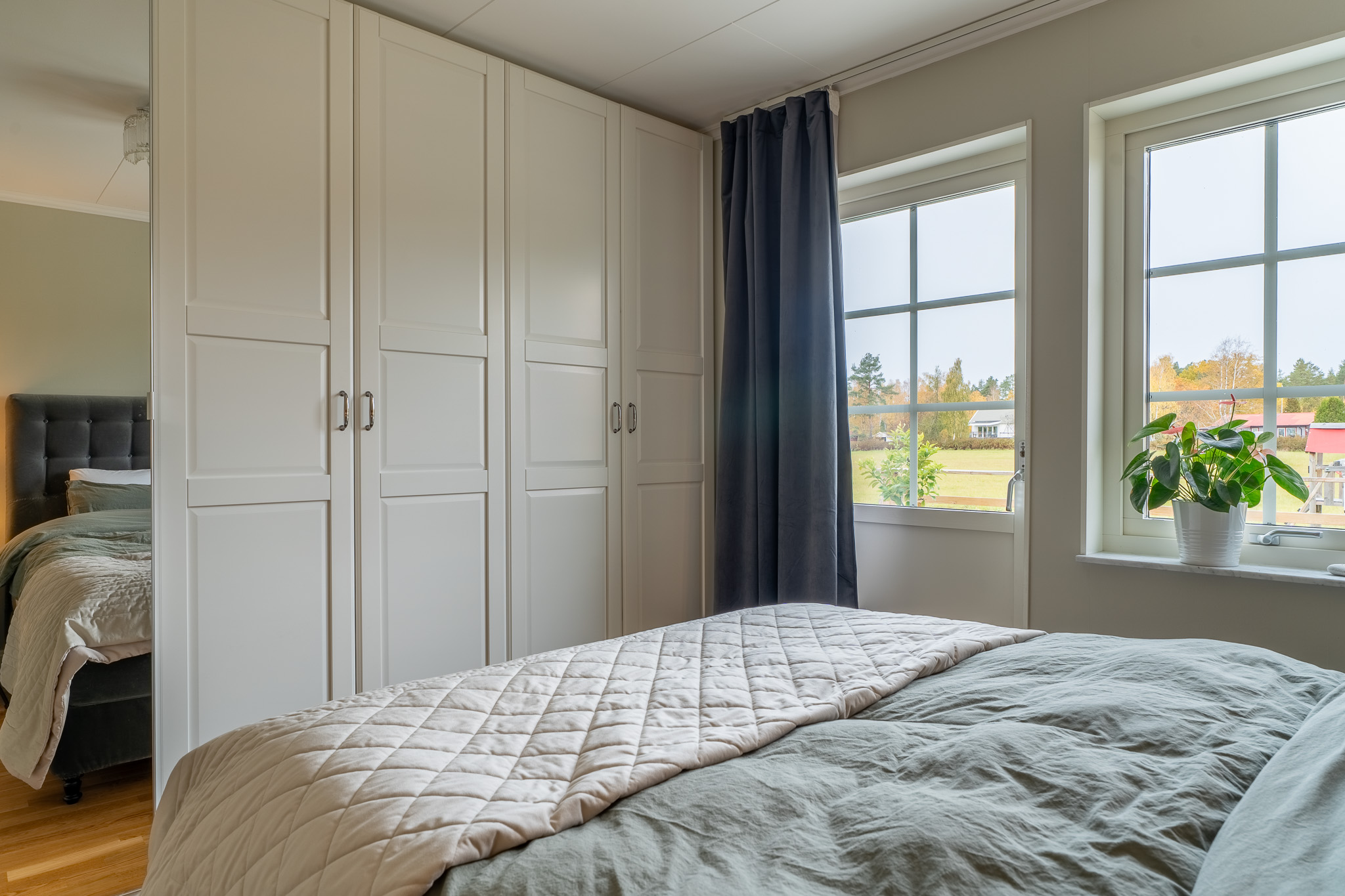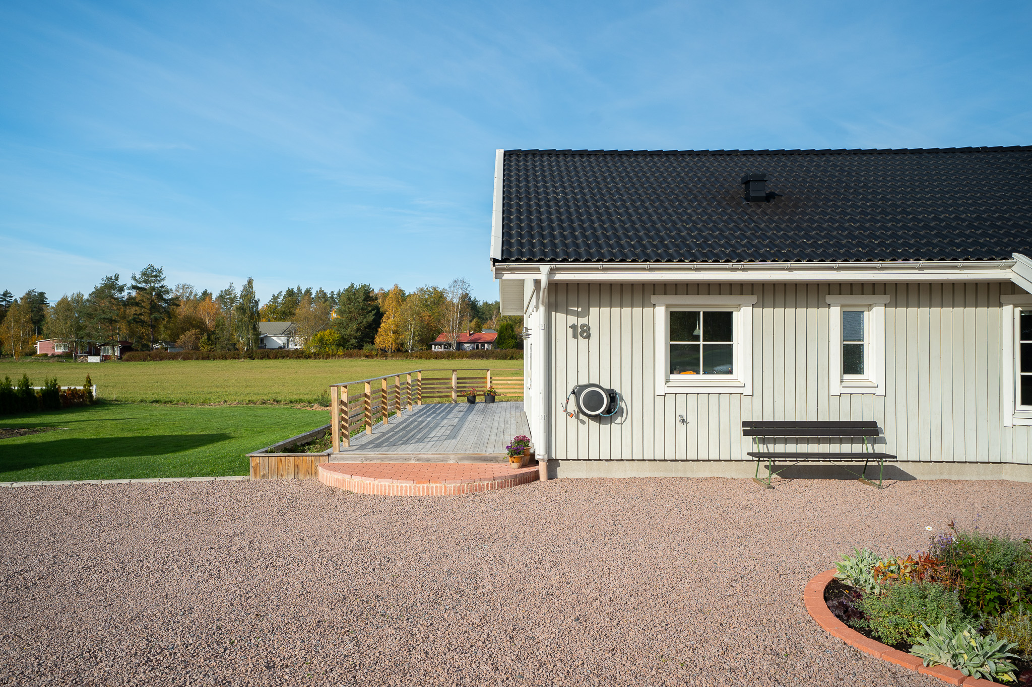 Välkommen till ett modernt enplanshus i natursköna Solvik. Här bor du bekvämt i ett välplanerat enplanshus om 130 kvm med sex rum och kök varav fyra sovrum. Bostadens ljusa sobra färger skapar tillsammans med det enhetliga golvet ett elegant och inbjudande helhetsintryck. Planlösningen är halvöppen mellan hall, kök och vardagsrum, vilket skapar utrymme för både familjeliv och umgänge. Köket och vardagsrum ligger centralt placerade mellan husets två sovrumsdelar, vilket ger en bra balans mellan umgänge och avskildhet. På den ena sidan finner ni två sovrum och ett trivsamt allrum som med fördel kan nyttjas som ungdomsrum eller varför inte för barnens lek, spel eller filmkvällar. På den andra sidan av huset ligger ytterligare två sovrum, varav det ena är lite större och kan nyttjas som ett master bedroom. Denna planlösning ger familjen möjlighet till egna privata ytor samtidigt som köket och vardagsrummet bildar en social samlingsplats för hela familjen. Bostadens kök från HTH är stilrent och funktionellt med gott om arbetsyta, generös förvaring och en inbjudande köksö som underlättar matlagningen och erbjuder extra serveringsyta. Köket är välutrustat med inbyggnadsugn, mikro, induktionshäll, fläkt, hel kyl och hel frys. Intill köket finner ni vardagsrummet som med sina stora fönsterpartier släpper in rikligt med ljus och ger er en vacker utsikt mot den natursköna omgivningen. Här finns gott om plats för både soffgrupp och matsalsmöbel, vilket gör rummet perfekt för både vardag och festligare tillställningar. Från vardagsrummet nås även den generösa altanen med fri vy över öppna fält. I huset finner ni även två badrum, båda smakfullt inredda. Det ena med dusch och det andra med bubbelbadkar. Med smart planerad planlösning finner ni även tvättstuga och groventré som ger er både nytta och funktion. Här finner ni både arbetsyta, förvaring, tvättmaskin, torktumlare och överskåp. Utvändigt möts du av en välskött tomt med nyanlagda perennrabatter på framsidan. Här finner ni även en carport med vidbyggt förråd och gott om plats för förvaring. Området är lugnt och barnvänligt, beläget på återvändsgata med närhet till natur, promenadstråk och badplats endast en kilometer bort. Här bor du lantligt men ändå nära staden. På Igelkottsvägen 18 bor du med cirka 7 minuters bilresa in till Torshälla och 15 minuter till Eskilstuna centrum. Varmt välkommen med din intresseanmälan!
