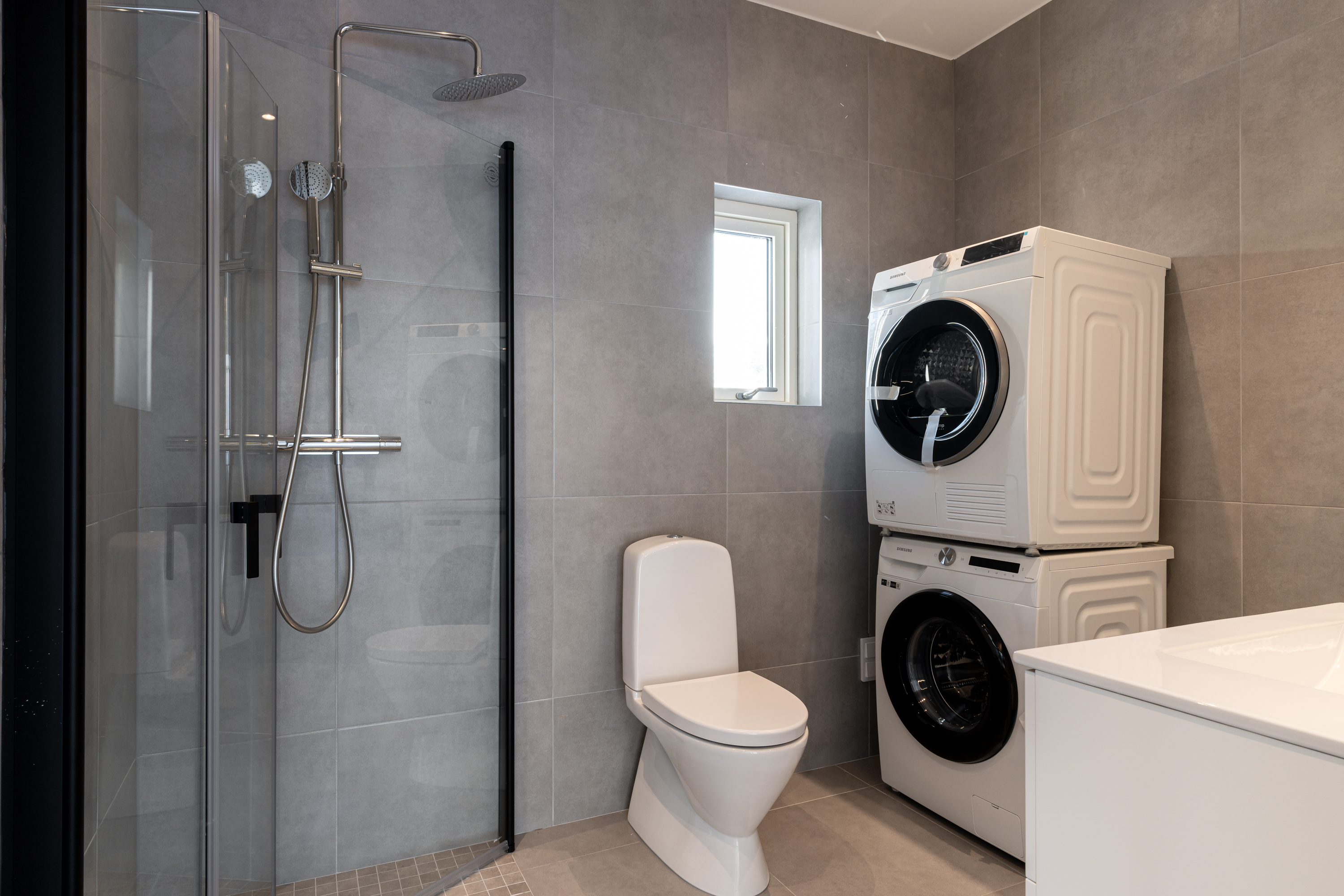 Till varje bostad ingår två parkeringsplatser. Varav en på den öppna parkeringsytan där samtliga även erbjuds varsin laddstation.