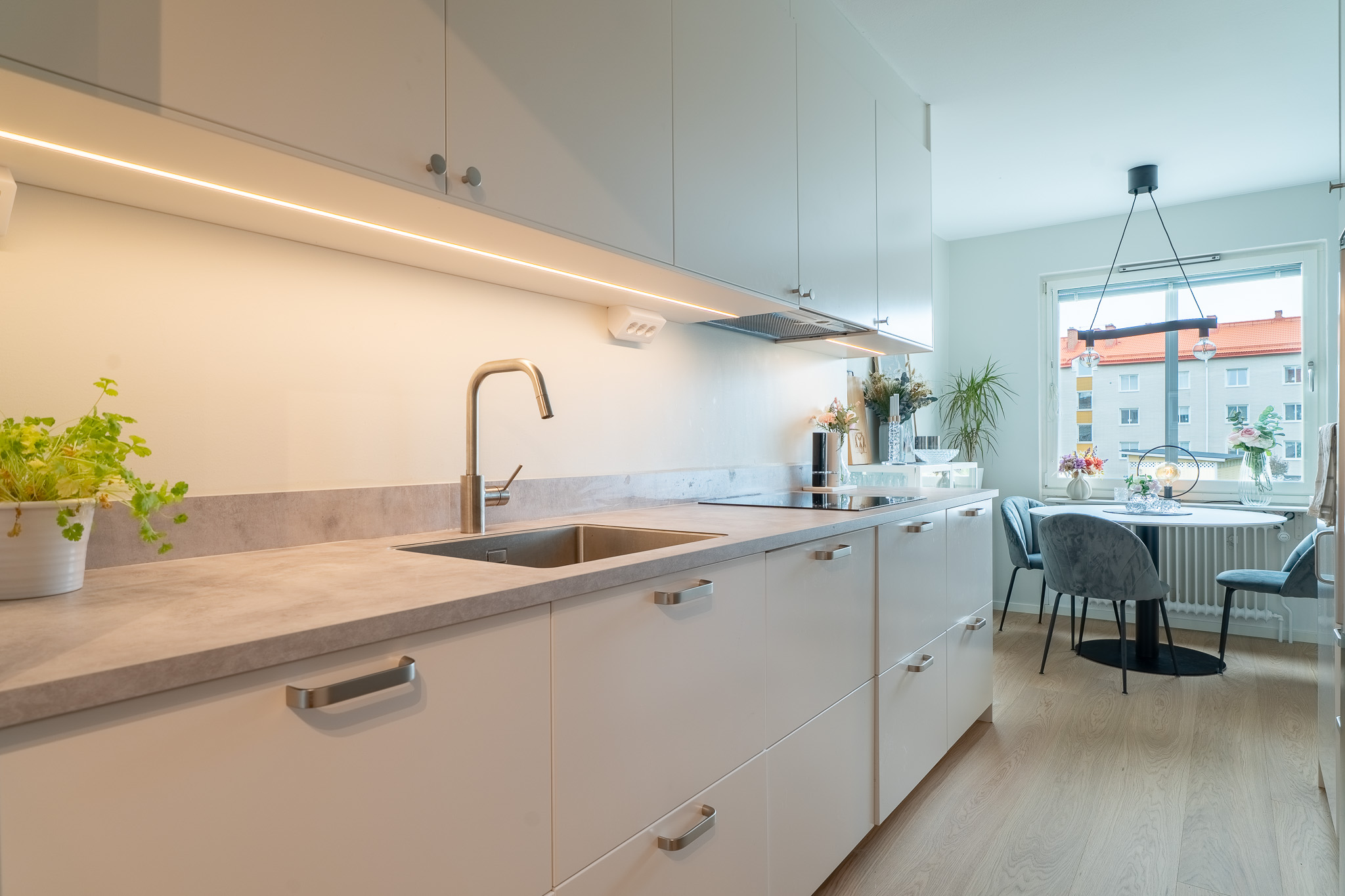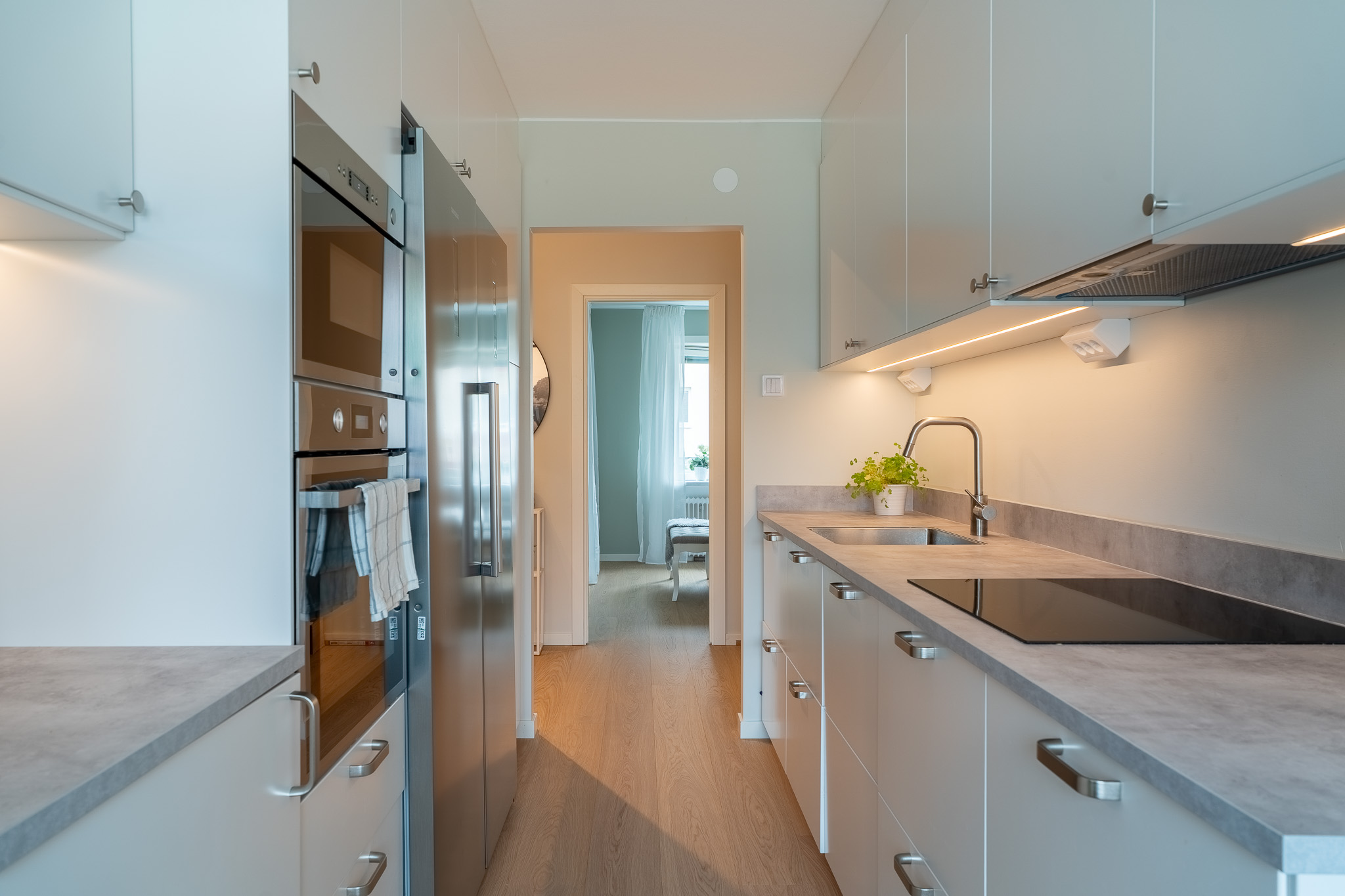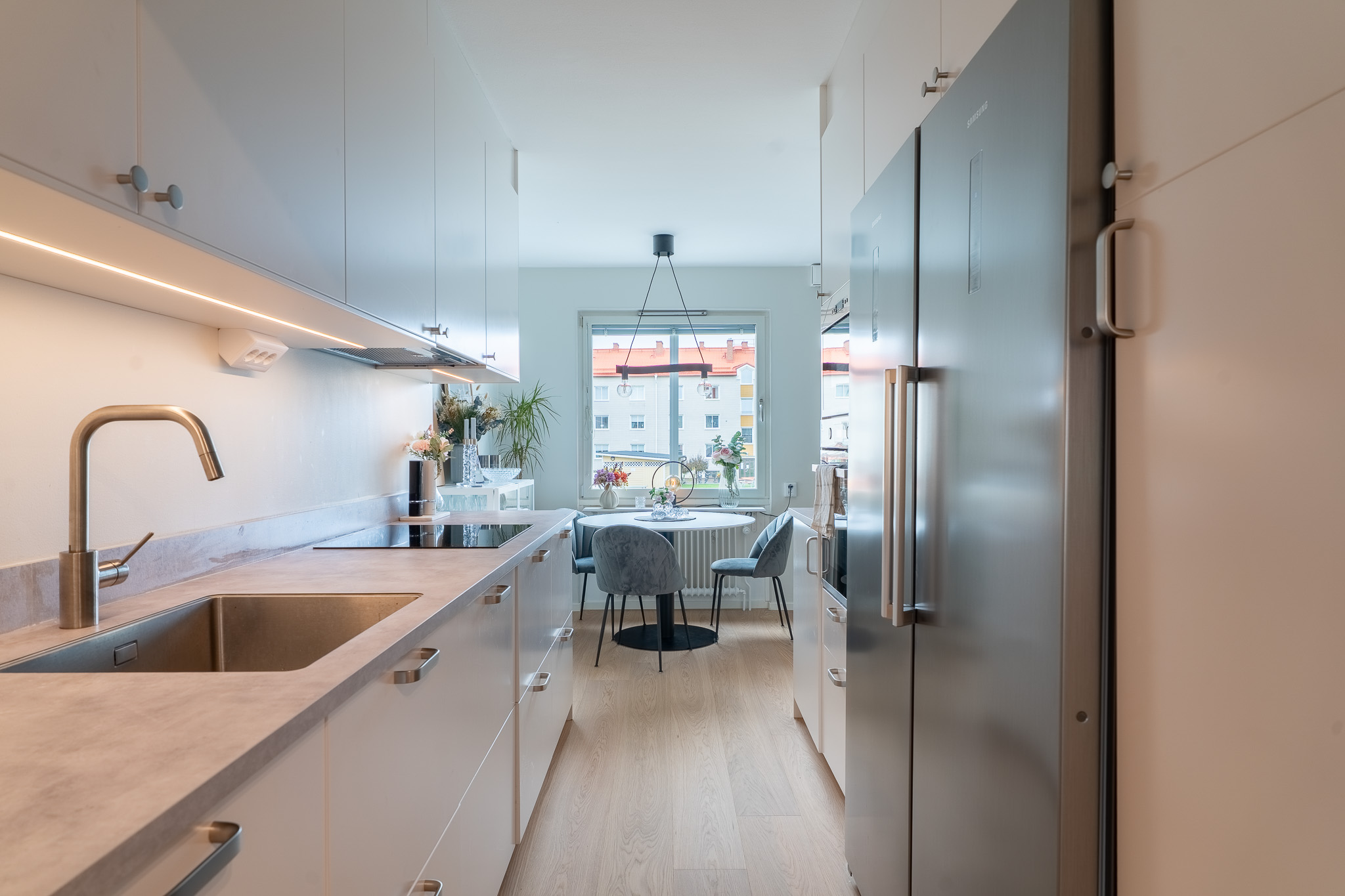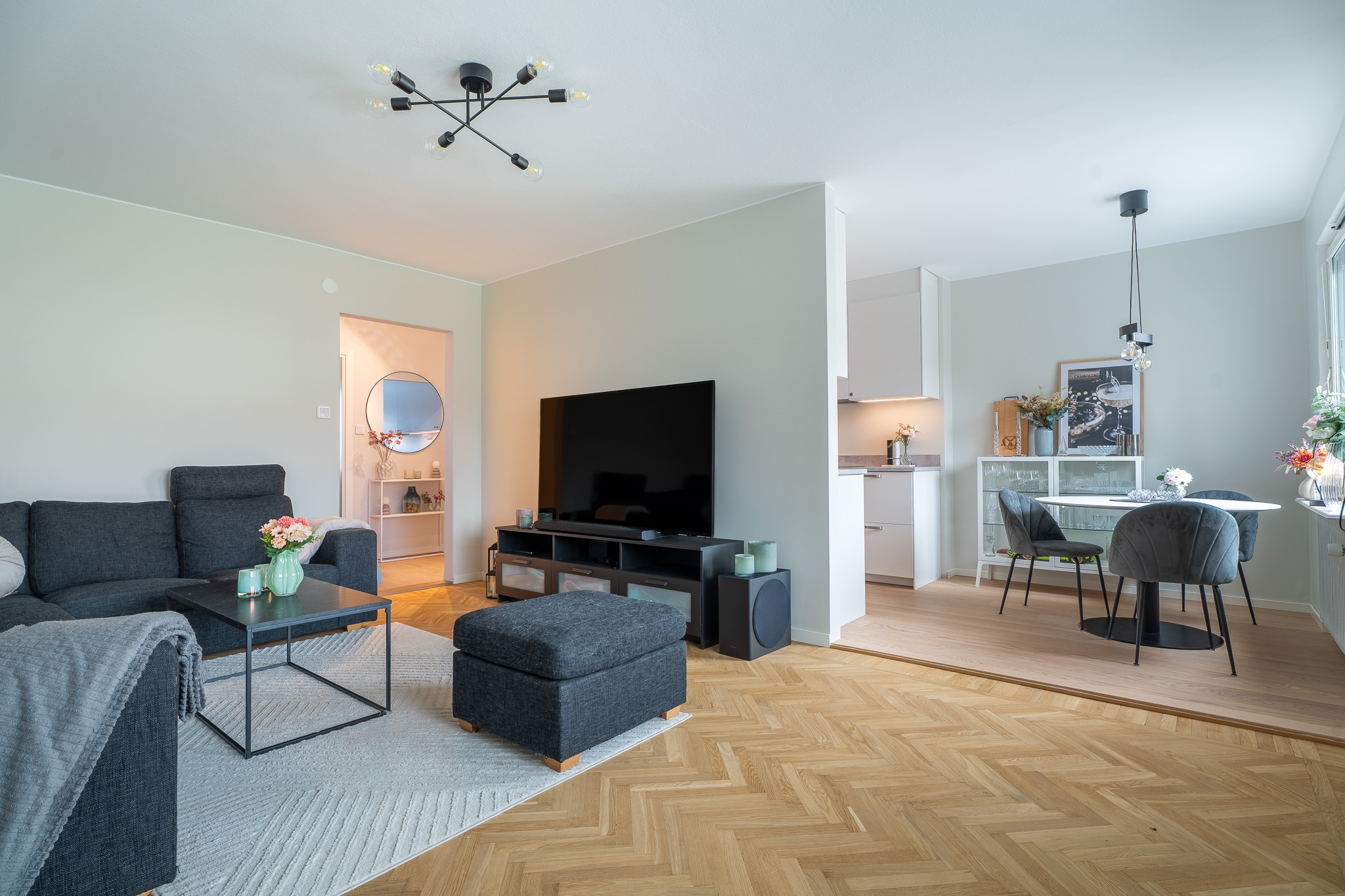 Välkommen till Vadmansgatan 3C – en helt fantastisk, totalrenoverad trea på 73 kvm som andas modern komfort och stil! Entréhallen erbjuder gott om plats för avhängning och plats för garderob, vilket ger ett välkomnande och organiserat första intryck. Längre in i bostaden finner du det helt nya, stilrena köket från Ikea – ett drömkök för matälskare! Här finns modern utrustning med stor kyl och frys, inbyggnadsmikro och inbyggnadsugn, samt integrerad diskmaskin och spishäll. Gott om förvaring i både skåp och lådor gör att köket inte bara är snyggt, utan också funktionellt. En vägg mellan kök och vardagsrum har tagits ner för att skapa en öppen och luftig känsla, perfekt för sociala stunder och familjemiddagar. Det ljusa vardagsrummet är rymligt och inbjudande, med plats för en generös soffgrupp, matsalsbord och mycket mer. Från vardagsrummet når du den stora inglasade balkongen, som erbjuder gott om utrymme för en generös loungegrupp. Vardagsrummet erbjuder dessutom en nyslipad fiskbensparkett . Det helkaklade badrummet har nyligen renoverats och är utrustat med handfat på kommod, tvättmaskin, dusch bakom vikbara glasväggar samt spegelskåp med belysning. Bostaden erbjuder två generösa sovrum som båda erbjuder plats för dubbelsäng och båda sovrummen erbjuder två utrymmen som idag används som förråd/garderob. Sammanfattningsvis är detta en unik chans att förvärva ett helrenoverat hem med moderna bekvämligheter, där inget saknas. Här är det bara att flytta in och börja njuta av ett boende som kombinerar funktion, stil och komfort i ett!