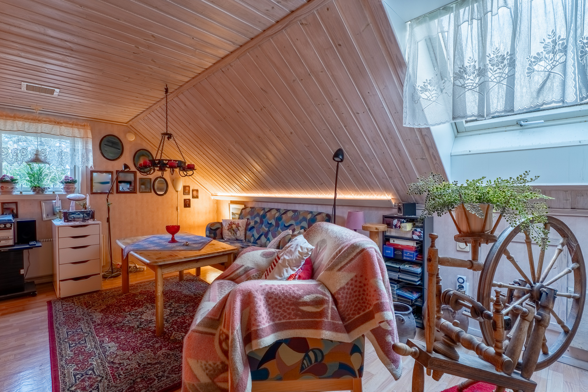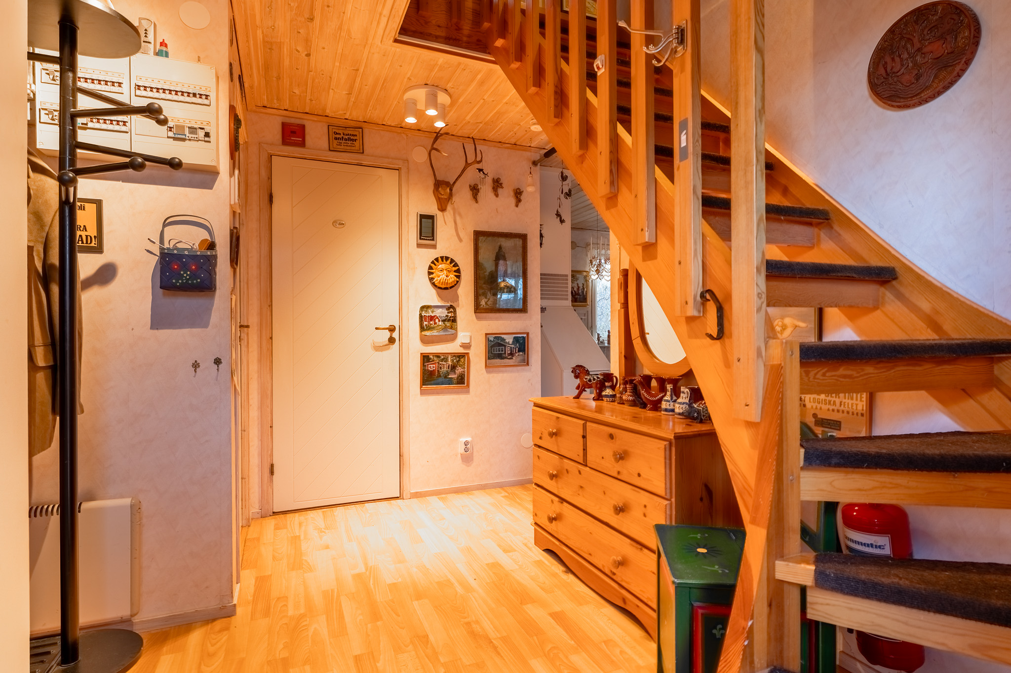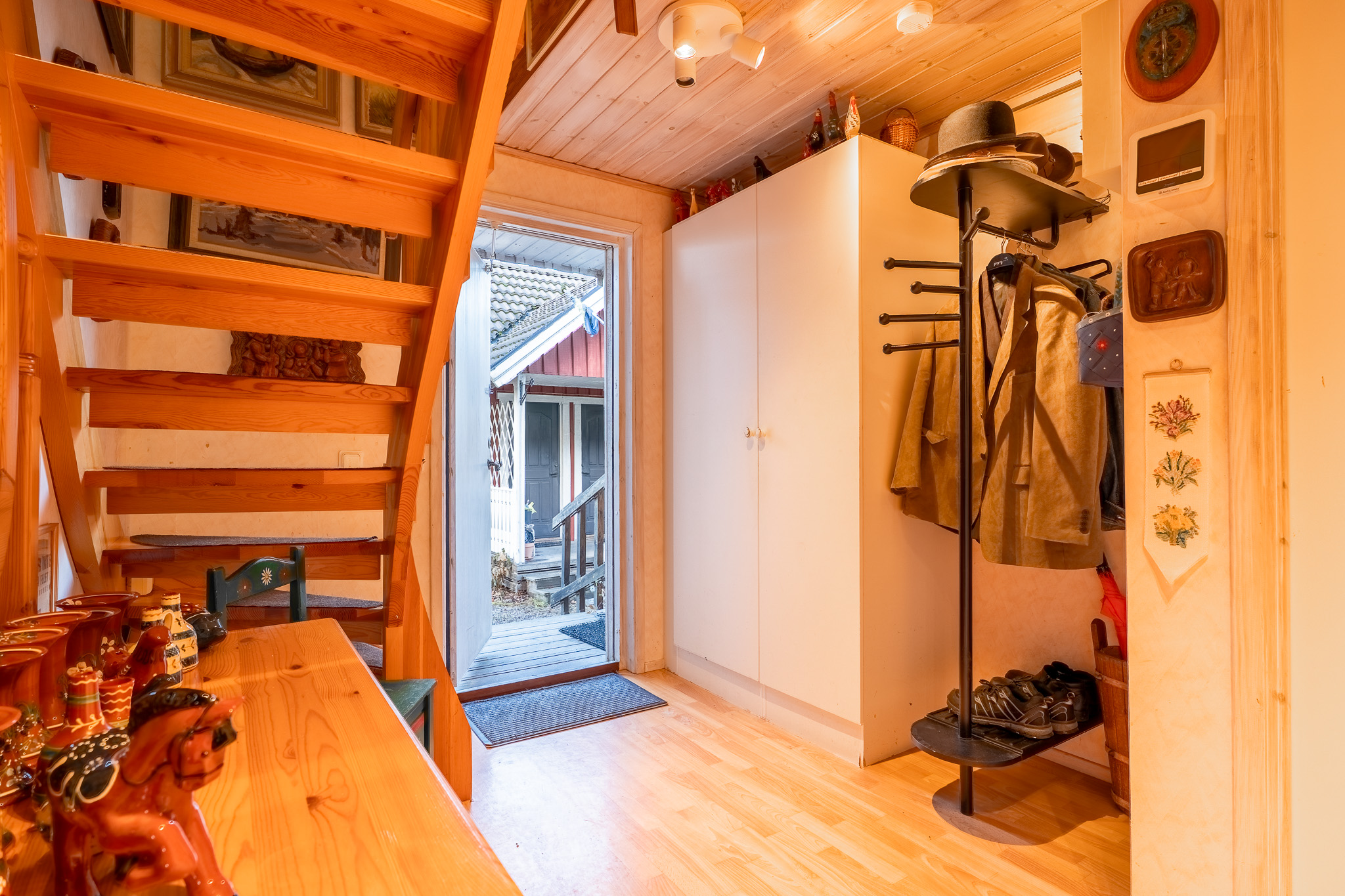 Välkommen till en mindre välhållen villa med potential för permanent eller fritidsboende, belägen på en stillsam återvändsgata i Sundbyholm. Här bor du med naturen runt hörnet och med närhet till både badplats, båthamn, travbana och restaurang. Fastigheten erbjuder ett boende i 1½ plan med inredd vind. Den inredda vinden erbjuder ett generöst extrautrymme som enkelt kan anpassas efter dina behov. Här finns goda möjligheter att skapa ett eller två sovrum, ett avskilt arbetsrum eller en mysig allrums del. Välkommen in! Här möts du av en hall utrustad med praktisk garderob och intilliggande badrum. Bostadens badrum är utrustad med dusch, spegelskåp, wc och handfat på kommod. I anslutning till hallen finns även ett rum/sovrum med ett intilliggande mindre allrum i fil. Det mindre allrummet är perfekt att nyttja som klädkammare, arbetsrum eller extra loungeyta. Bostadens kök går i ljust utförande med vita köksluckor och bra förvaringsmöjligheter i både över och underskåp. Här finns spis, ugn, fläkt, hel kyl och frys. Intill fönster i köket finns även plats för matbord. Från köket öppnar hemmet upp sig mot vardagsrummet där en stämningsfull braskamin tar plats. En trappa upp möts du av ett allrum och ett rymligt sovrum/allrum med hela två klädkammare. På fastigheten finns även en ytterligare byggnad som inrymmer en stor tvättstuga utrustad med tvättmaskin, tvättho, wc och handfat. Dessutom finns här ett förråd samt ett hobbyrum. stor tvättstuga utrustad med tvättmaskin, tvättho, wc och handfat. Dessutom finns här ett förråd samt ett hobbyrum. Perfekt för dig som gillar att skapa, fixa eller behöver extra utrymme för förvaring. En bostad med chans att kunna sätta en egen prägel på hemmet som kan komma att spegla din önskade stil. Varmt välkommen med din intresseanmälan.