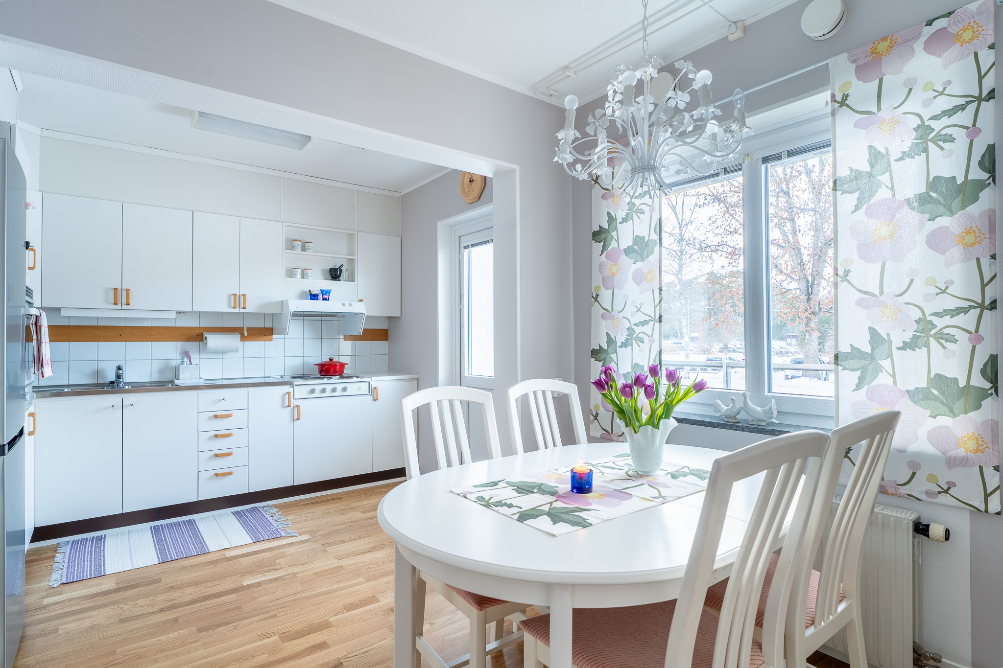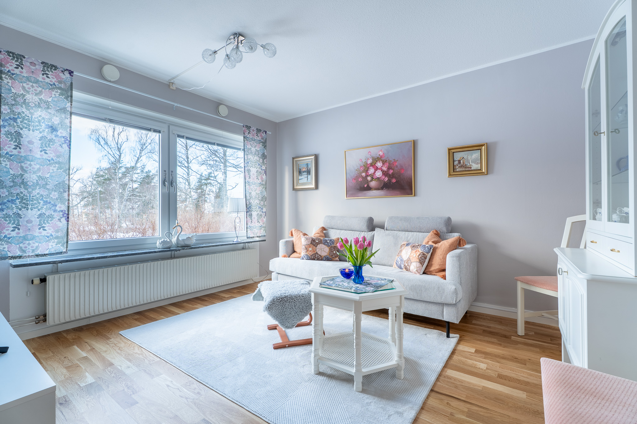 Välkommen till denna trivsamma och välplanerade etta om generösa 50 kvm, belägen på attraktiva Sveavägen 23A. Här erbjuds ett hem där varje kvadratmeter är väl genomtänkt, med en härlig balkong och bekvämt avstånd till centrum. När du kliver in i bostaden möts du av en ljus och inbjudande bostad med en harmonisk känsla. Det rymliga vardagsrummet erbjuder gott om plats för både soffgrupp och tv-möbel. Här har man på ett smart sätt skapat en avskild sovalkov genom en skiljevägg, vilket ger en mer privat sovdel med plats för säng. I anslutning finns även praktiska, platsbyggda garderober som ger goda förvaringsmöjligheter. Vidare in i bostaden finner du det ljusa och trivsamma köket, som erbjuder gott om förvaring i både över- och underskåp samt en generös matplats där vänner och familj kan samlas. Från köket nås även bostadens balkong – en härlig plats att njuta av morgonkaffet eller varma sommarkvällar. Badrummet är funktionellt och utrustat med dusch, WC, handfat med kommod samt ett praktiska förvaringsskåp. Lägenheten har nyligen uppdaterats med enhetligt parkettgolv och nymålade väggar i ljusa kulörer. Här bor du i en välskött bostad med smart planlösning, fint ljusinsläpp och närhet till stadens utbud – ett hem att trivas i från första början. Som medlem i föreningen får du möjlighet att använda flera gemensamma utrymmen. Det finns en samlingslokal där olika aktiviteter, som bingo, ofta arrangeras. Dessutom finns ett bibliotek, en snickarverkstad, en bastu och en övernattningslägenhet för gäster som kommer långväga ifrån. Observera att det står i föreningens stadgar att du som köpare ska ha uppnått en ålder om 55 år för att kunna bli medlem och få tillträde i föreningen. Här bor du med närhet till stadens bekvämligheter - ett hem att trivas i länge!